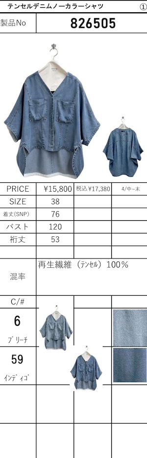 【ご予約】テンセルデニムノーカラーシャツ 826506【ayane】