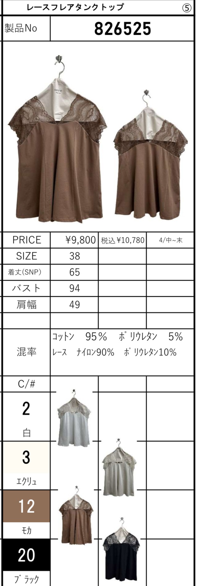 【ご予約】レースフレアタンクトップ 826525 【AYANE】