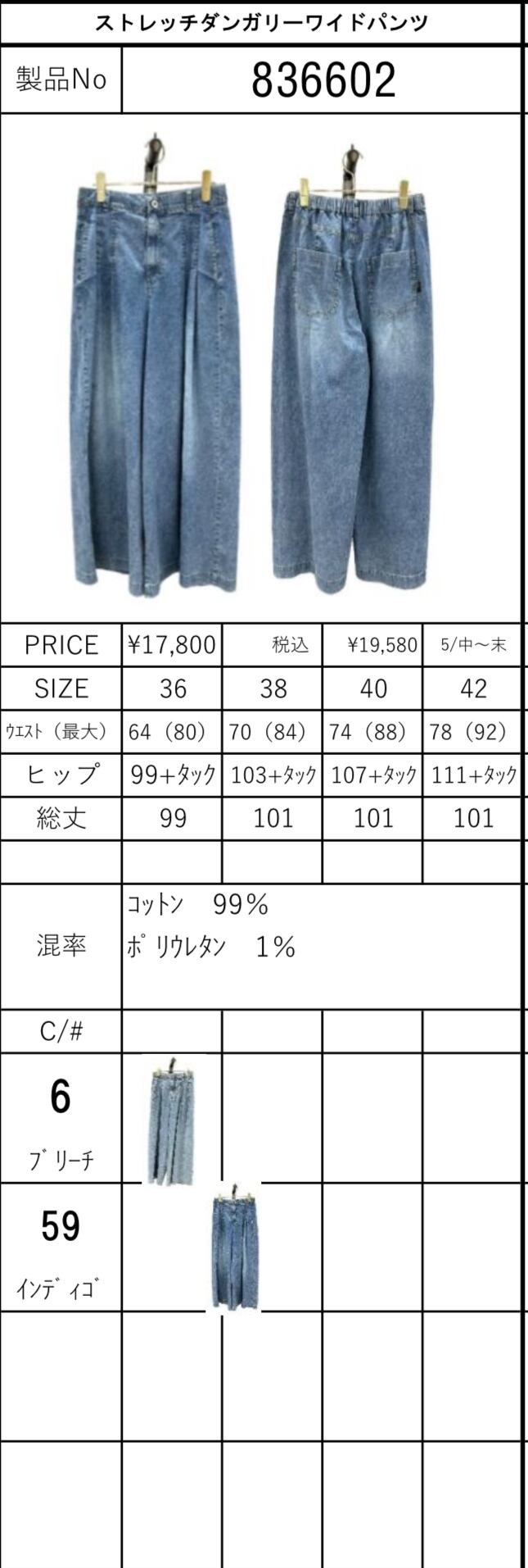 【ご予約】ストレッチダンガリーワイドパンツ 【ayane】