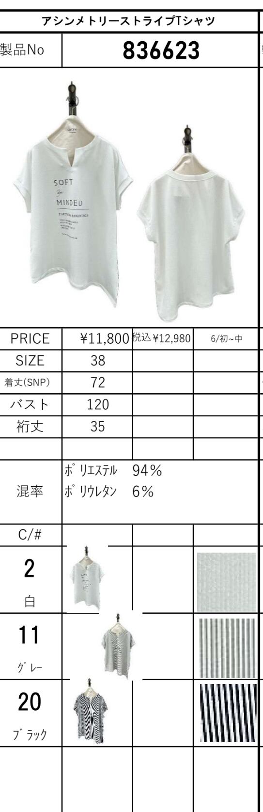 【ご予約】アシンメトリーストライプTシャツ 836623【ayane】