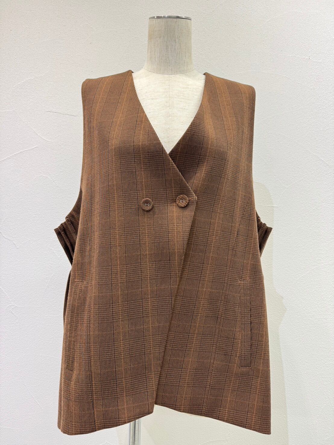 アームプリーツグレンチェックベスト